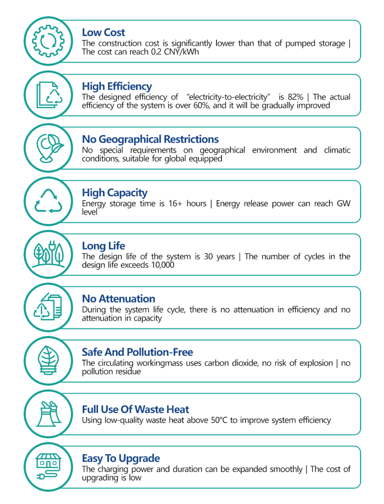 The construction of ' s CO2 compression energy storage system is not restricted by geographical conditions. Regardless of deserts, tidal flats, and garbage back fills, they can be used as carbon dioxide compression energy storage construction sites; regardless of climatic conditions, CO2 compression energy storage systems can be built in cold, temperate zone, and tropical regions.